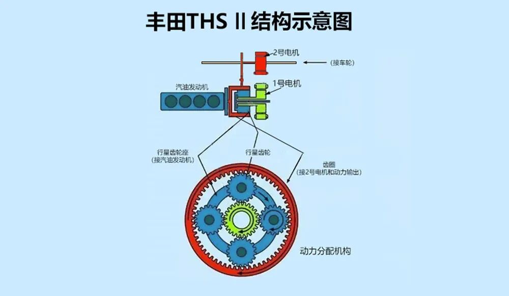 例如怠速(充电)时候,虽然发动机正在运转,它只会通过行星齿轮驱动1号电机进行充电,但是不参与动力输出。