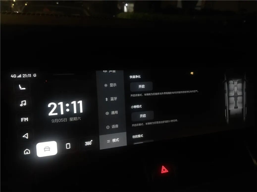 定制化的功能方面,这台理想ONE似乎还没做太多深入的挖掘。比较有特色的一个是“小憩模式”—— 一键开启之后,驾驶席的座椅会自动往后调成接近完全平躺的状态,方便车主中途作短暂休息。“小憩模式”还支持自行设定计时,可以说是专门针对跑高速的中途休息场景设计的。