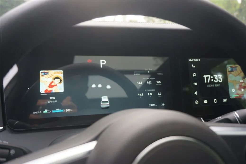 上面一排的三块屏中,最左侧依然是传统的仪表,负责车况、ADAS系统、当前多媒体项目等行车信息。