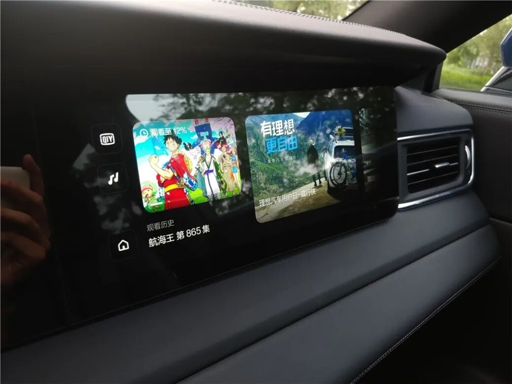 右侧面正对副驾驶的屏幕,则是一个纯粹的车载内容平台,不过目前可选的应用并不多,仅有内置的爱奇艺和理想推送的官方广告视频,不知道是否有独家合作。广播、网络音乐、导航的功能分别给了喜马拉雅、QQ音乐和高德,如果未来能够有车载操作系统和应用商城支持扩展那就更好了,相信这一块领域会是一个兵家必争之地。