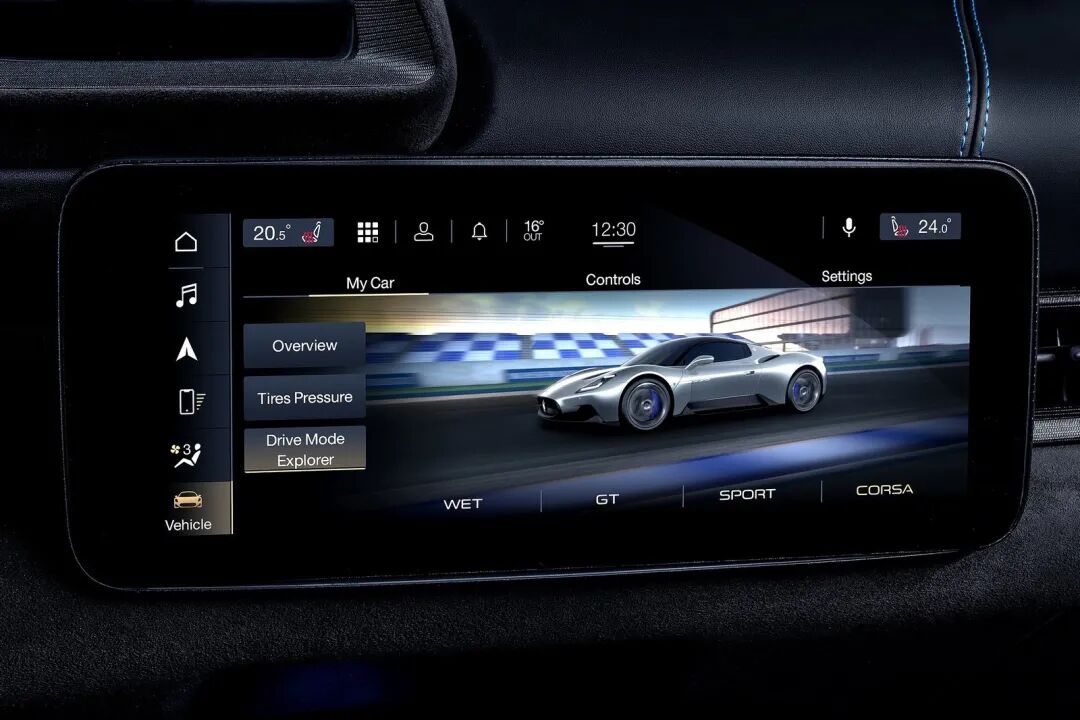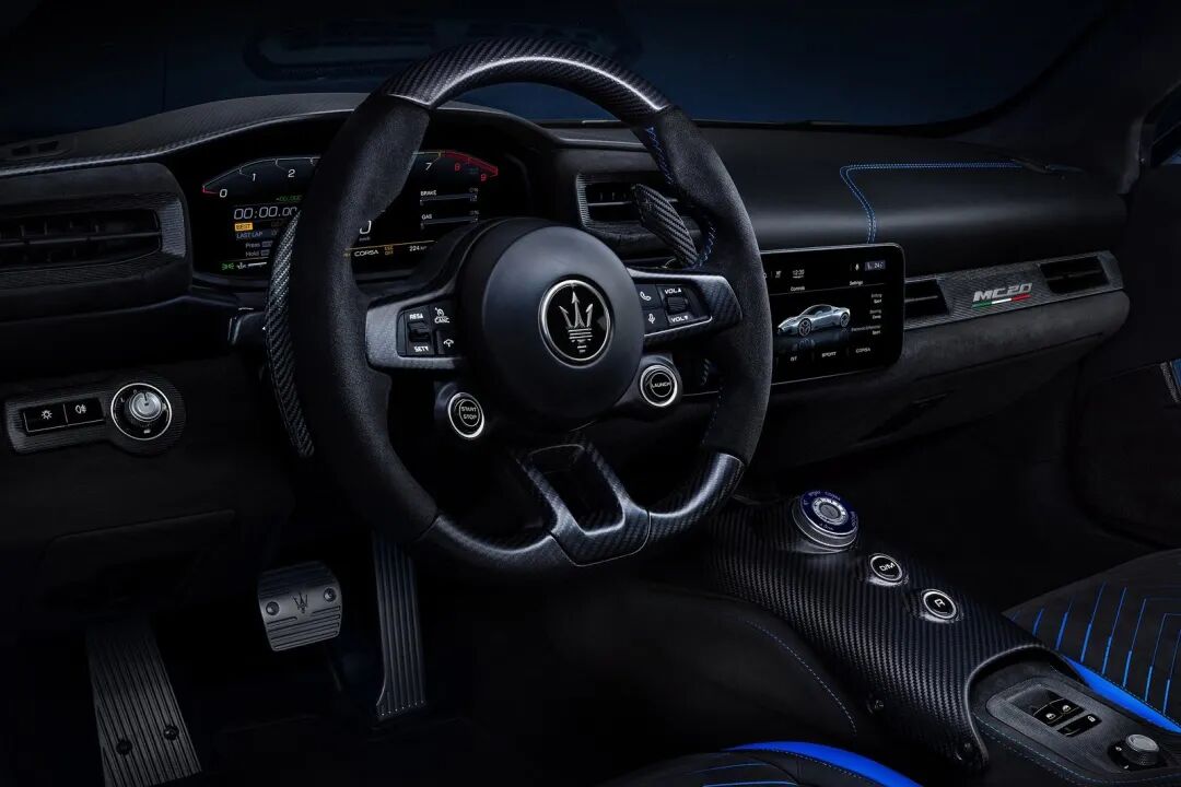 方向盘的造型非常能激发驾驶欲望,上面除了配备多媒体等操作按钮外,还集成了一键启动和弹射起步的快捷操作按钮。车内配备的两块10.25英寸液晶屏显示信息丰富,界面设计简洁,并不会分散太多驾驶员的注意力。MC20搭载来自“Sonus Faber”的音响系统,这家顶级音响品牌除了玛莎拉蒂之外,仅提供给帕加尼Huayra(参数|询价)。