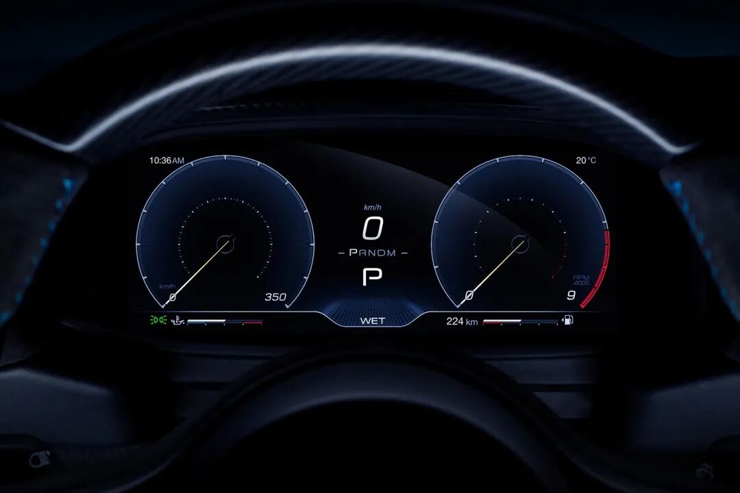 MC20采用了热压罐成型的碳纤维单体壳车身,而整车碳纤维和轻量化复合材料的使用比例也相当高,新车车重甚至不到1500公斤。其搭载完全由玛莎拉蒂自主研发的“Nettuno海神”3.0T V6发动机,凭借630马力的最大功率输出,使MC20的功率重量比达到了2.33kg/hp,为同级别最佳。而MC20的百公里加速时间也低于2.9秒,最高时速超过325km/h。