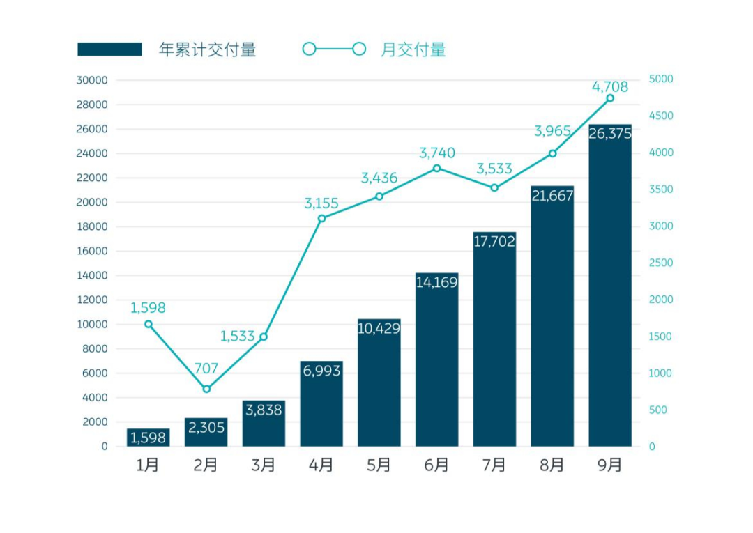 10月2日,蔚来公布的最新交付数据显示,其在9月交付用户4708辆各个型号车型,实现连续7个月同比增长;第三季度交付12206辆,前三季度累计共交付26375辆,已超越2019年全年交付总数。蔚来已经稳站新能源汽车销量榜单的前三名,去年下半年曾甚嚣尘上的“活不过1年”的谣言,在这样的数据面前,早已显得单薄无力。