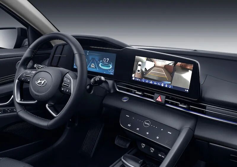 车内的很多细节也体现着第七代伊兰特的时尚格调和不凡品味。第七代伊兰特采用同级独有的双10.25英寸智慧连体屏,并且屏幕向驾驶位倾斜10°,关键还具有非常前卫的、跟苹果手机类似多点触控模式:当用户三指触控时,界面会跳转到整体菜单;四指触控时,界面会跳转到主页面;五指触控时,中控屏便会息屏。