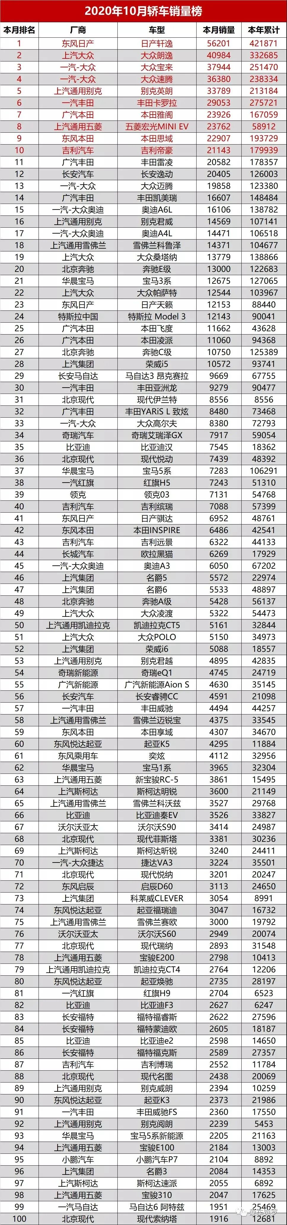 预计11月份的销量排名不出其右。只是市场已经过去大半,时间已经无法扭头,与它们相比,那些轻脚慢步的品牌和车型,或许只能在轻略细语中去感受自己的“余声”了......