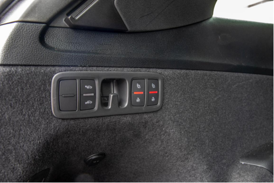 第三排座椅还可以电动放倒和升起,在第二排和后备厢都配备了电动调节按钮,操作起来很方便。