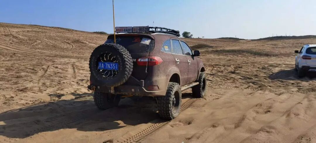 不得不说,经过专业改装的驭胜就是不一样,在这松软的厚田沙漠,换装了30*12的大脚,再加上增高的悬架,简直如履平地。