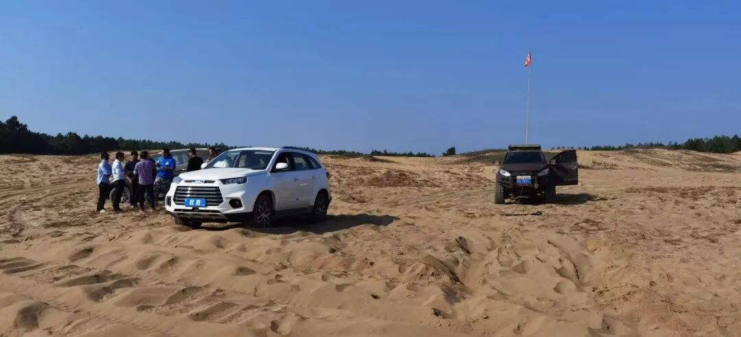 在极其松软的沙地上,没有经过任何改装的原厂驭胜,同样轻松起步~