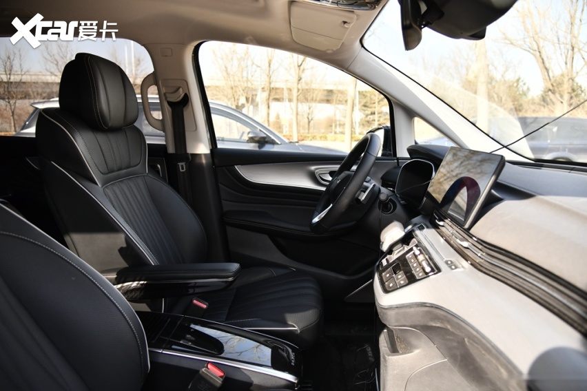 说完外观,内饰和空间才是MPV的精髓之处,如果内饰不好看,空间不够大,为什么选择它?我们拿到的试驾车内饰采用了全黑的设计,同时厂家还提供蓝白的内饰。中控台采用了向驾驶员倾斜的设计理念,从上到下层次感分明。中控台上方采用大量的搪塑材质,银色拉丝面板与之搭配,无论是做工还是用料符合主流水平。