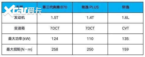 在动力方面,全新全新第三代奔腾B70搭载1.5T智擎发动机动力,最大功率124kW,最大扭矩258N·m,匹配了博格华纳7速双离合变速器。反观日产轩逸,换代后依旧是全系搭载1.6L自然吸气发动机,最大功率99kW,最大扭矩159N·m,匹配的是CVT变速器。两车功率相差25kW,扭矩相差99N·m。在如此悬殊的数据面前,实际驾驶体验不言而喻。