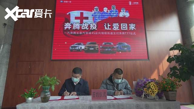 2021年2月7日上午,在长春一汽汽贸城奔腾4S店举行了一场特别的签约仪式!仪式上由一汽奔腾北部区域总经理蔡猛先生和长春市汽车产业开发区锦程街道主任魏鹏先生共同签署了“克艰难共奔腾 免费抗疫车辆使用”。