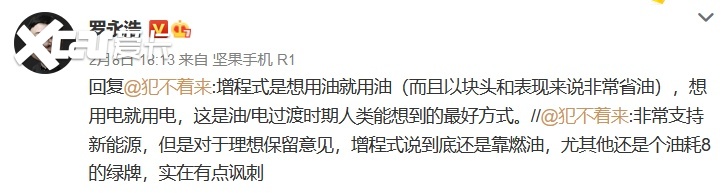 那么问题来了:罗永浩一方面别有用心地把理想ONE归到电动车行列,特吹特吹,另一方面对任何质疑声强力打压,目的究竟何在?