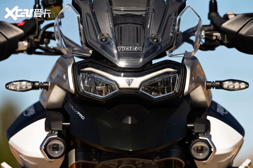 Tiger 900全系车型均为全LED灯源,前大灯以及前脸的设计比起Tiger 800变化巨大,“眼睛”更小更具攻击性,原厂就配备的射灯则是拉力摩托车所必备的,只不过无需后期加装,凯旋直接原厂配备。