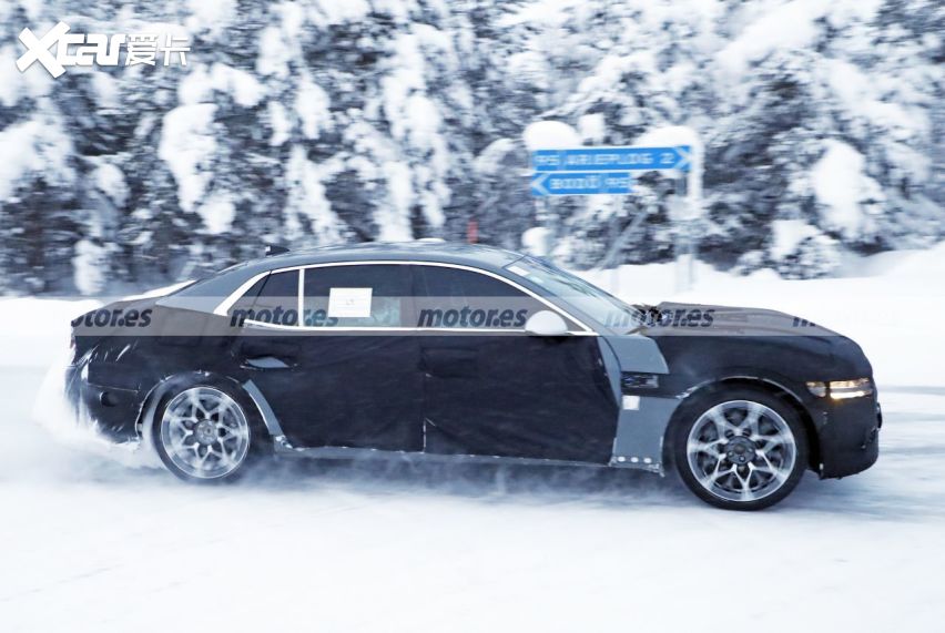 由于路试车出现在了北欧冰天雪地当中,所以它的尾部有一层厚厚的积雪,新车的车尾部的细节暂时还没有暴露出来。在内饰方面,根据之前的路试谍照显示新车将采用连体悬浮式的大屏设计,风格很有科技感。在动力方面,新车将继续搭载5.0L的V8动力,并且有望加入插电混合动力系统,并且新车将会配备空气悬挂。
