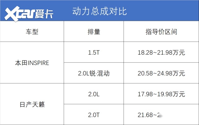 20万元以上车型,可选天籁2.0T,但INSPIRE 2.0L锐·混动更强