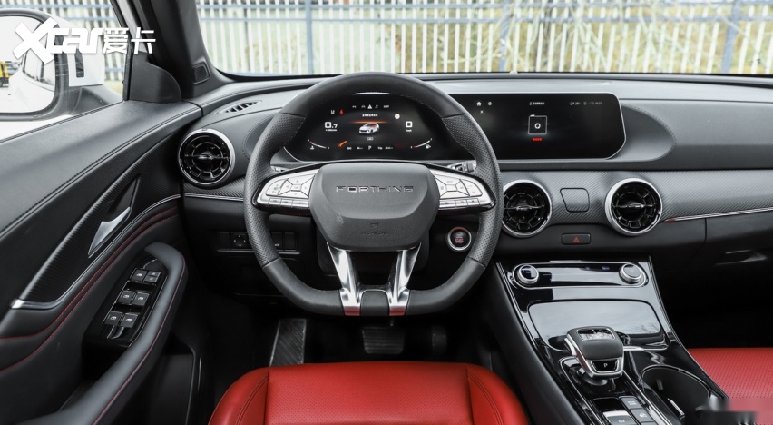 进入到车内,风行T5 EVO的内饰整体走的是简洁范儿,但在豪华感的营造上也同样不落下风。中控台通过不同线条的勾勒后,拥有较强的层次感。而大面积的软质材料、镀铬饰条、仿碳纤维以及钢琴烤漆覆盖,又提升了车内的档次感。10.25英寸液晶仪表与10.25英寸中控显示屏营造出双联屏效果,满足了年轻消费者对科技感的需求,并内置了Future Link4.0智联系统,拥有导航、语音识别以及手机互联等功能。触摸式空调面板和游艇式电子挡杆强调豪华感,而平底方向盘、圆形空调出风口设计又突出车内的动感氛围。
