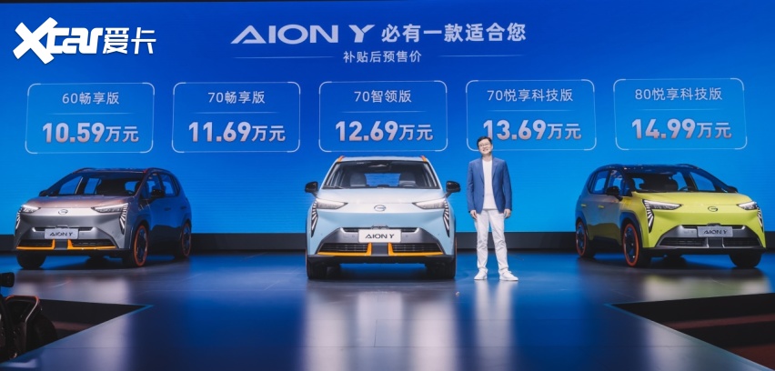 3月29日,“AION Y YES!都市潮玩智能纯电SUV预售发布会”在杭州运河文化发布中心震撼上演,在全国主流媒体以及AION年轻车主的见证下,广汽埃安副总经理肖勇先生揭晓了当晚的最大惊喜——AION Y将推出畅享版、智领版以及悦享科技版共计5款车型,覆盖410km、500km、600km三种续航里程,补贴后预售价格为10.59万元起,打造年轻人的10万级科技头等舱。即日起,AION Y开通广汽埃安APP线上预订通道,通过线上预订成功的客户,不仅可享受首任车主三电质保终身免费(非营运、行驶里程≤3万公里/年)、车联网服务终身免费(6G/月)、道路救援终身免费等“用车无忧”尊享权益,更可通过“尊贵定”套餐享受保养服务终身免费。让AION Y买得爽,用得更爽!