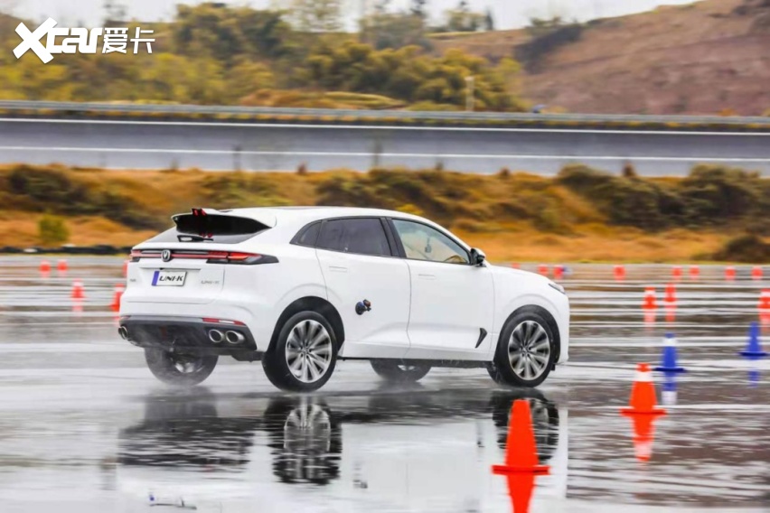虽然天公不作美,下雨导致测试场地湿滑,甚至还有不少积水,但是长安UNI-K依然顺利通关。
