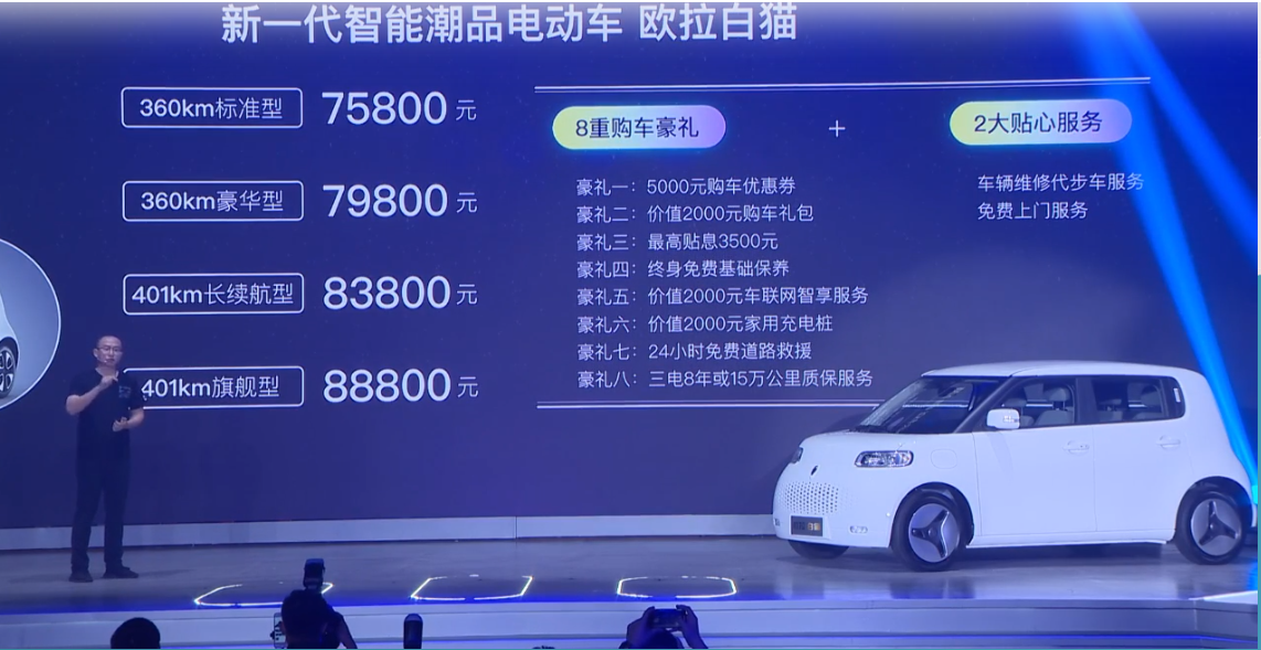 综合续航401公里,售价7.58-8.88万元!欧拉白猫上市