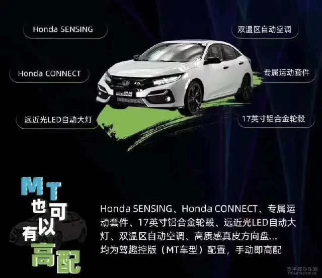 其实本田思域推出的这款手动挡车型的配置基本和CVT版本保持一致了,属于手动车型里配置非常高的,手动+ACC也是这个时代市面上并不多见的搭配。虽然作为本田粉儿我也是从心里乐开了花,但还是为东风本田担忧。