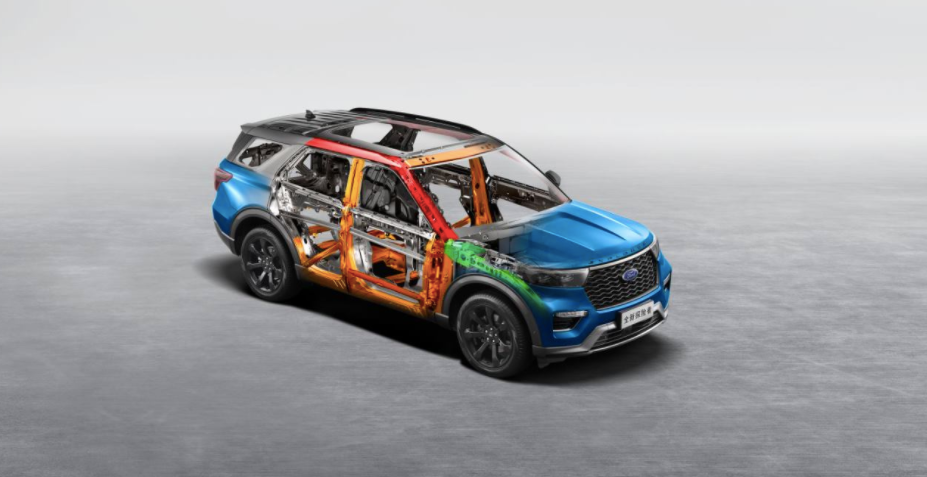 全铝合金悬挂系统探险者50:50前后轴平衡配重,配合双球节弹簧减震支柱铝合金前悬架和整合式多连杆铝合金后悬架,实现媲美轿车5.9米转弯半径;高强度笼型车身,最高强度可达1700Mpa,600Mpa以上高强度钢占比50.8%,给探险者带来稳定紧致的驾控快感和舒心安享的驾趣保障。
