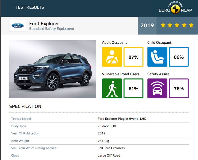 高强度笼形钢结构车身由于合理的设计以及厚道优良的用料,使得探险者获得了更为严苛的欧洲E-NCAP五星评级。