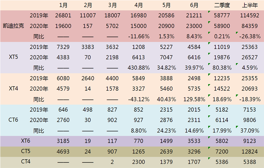 6月份同比增长8.43%,二季度同比增长0.21%,双双跑赢大盘,凯迪拉克用一份完美的答卷结束了2020年上半年的征程。