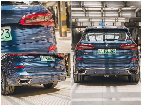 X5插混版的整体外观与燃油版M运动套件车型基本保持一致,仅在一些细节上突出了其新能源车的属性。例如:左前翼子板的充电口,车辆尾标后缀的“e”标识。