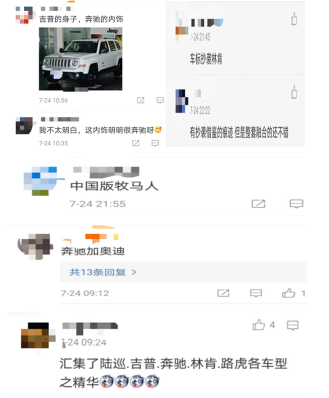 不仅如此,WEY坦克300上市后也引发了众多网友的争议,被称抄袭。网友们众说纷纭,“中国版牧马人(参数|询价)”、“吉普的外形,奔驰的内饰”、“奔驰加奥迪”、“车标抄袭林肯”……更有甚者说WEY坦克300是“汇集了陆巡、吉普、奔驰、林肯、路虎各车型之精华”,甚至还传出了“众泰皮尺部”跳槽长城的舆论。