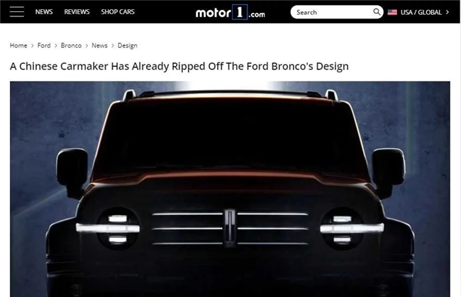 7月24日成都车展上,长城汽车携旗下多款新车亮相,其中长城旗下WEY品牌坦克300(参数|询价)开启中国首秀。早在WEY坦克300上市之前,就有外媒对此车的造型指指点点,嘲笑WEY坦克300的设计抄袭福特最新上市的Bronco(参数|询价),原文大概意思是“中国汽车制造商因抄袭其他厂商设计而臭名昭著,尽管现在中国汽车行业已成熟,但外观方面中国仍然与国外汽车制造商极为相似。近日,长城汽车于2017年创立的WEY品牌即将推出新产品,似乎是以新一代福特Bronco作为起点与终点”。