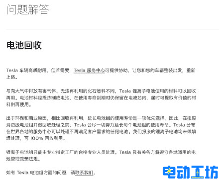 从特斯拉官方获悉,特斯拉在国内推出了电池回收服务,号称可以回收“不再满足客户需求的任何电池”,并将这些锂离子电池进行100%会回收再利用。如果客户想要使用该服务,可以与特斯拉客服中心取得联系。 目前,特斯拉并未大张旗鼓的宣传电池回收服务,只是在官网的问答界面,出现了电池回收的介绍。特斯拉在介绍内容中表示,推出电池回收服务的原因是出于环保和商业的考虑,位于全球的服务中心可以回收电池。