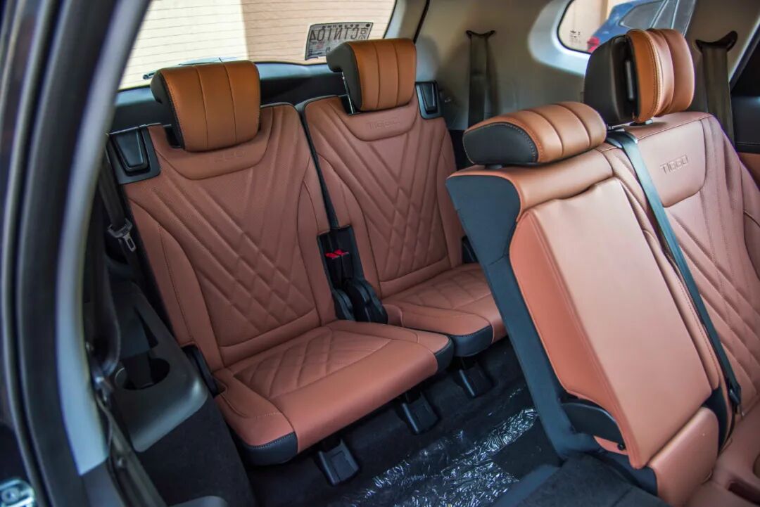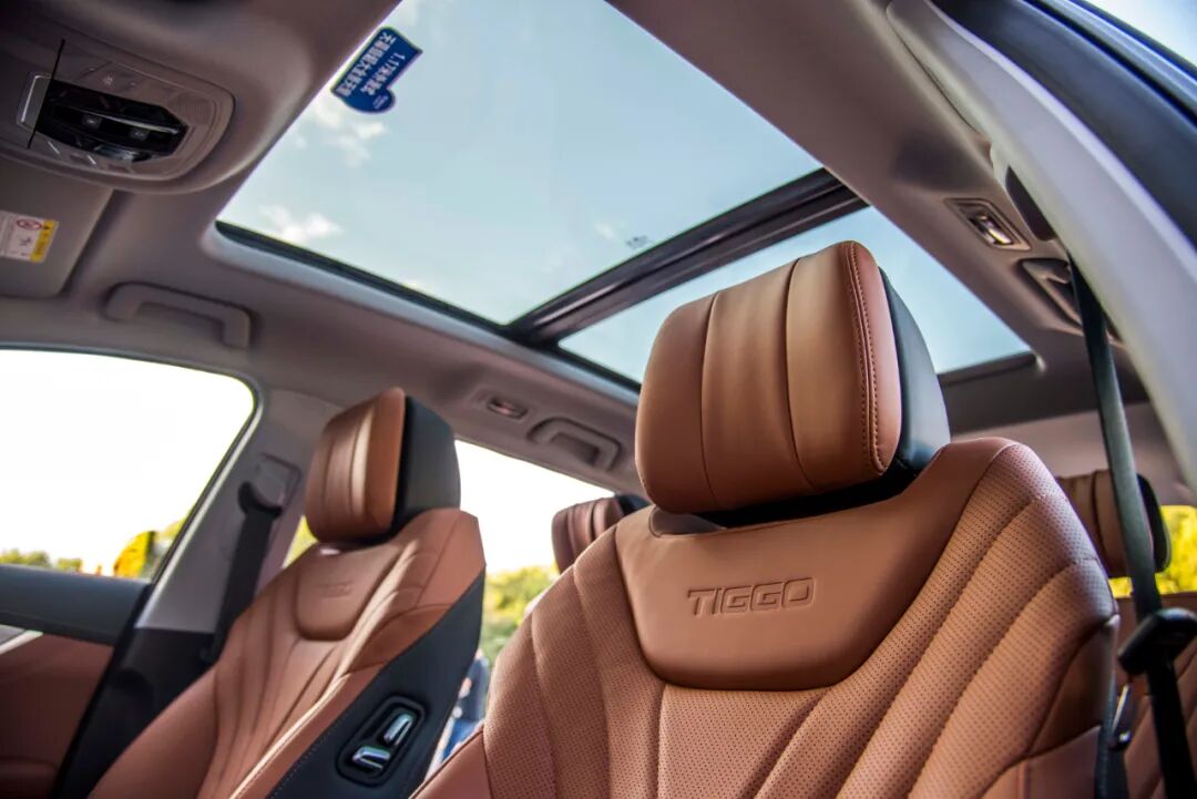 与瑞虎8相比,瑞虎8 PLUS最大的不同便是换装了一套内部填充更加丰满的座椅,其采用Nappa真皮材质,并加以优雅的菱形缝线进行妆点,视觉与触觉效果满分;第二排座椅较瑞虎8有两大升级,一是更加倾斜的靠背角度,可以让第二排乘客以更加舒展的坐姿享受旅途,而第二点则是可以手动调整两翼支撑的头枕,这对于长途乘坐的乘客来说可是太解压了,路途中打盹时再也不用担心左右乱晃的脑袋了。