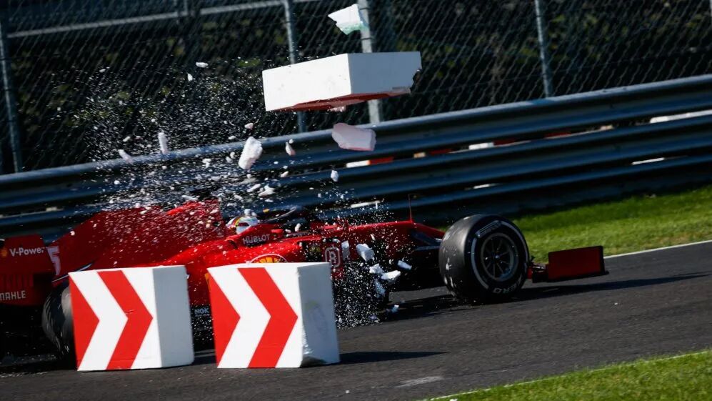 然而,这还不是最惨的,在后续的正式比赛中,法拉利全军覆没。在比赛进行到第6圈的时候,维特尔遇到了刹车故障,径直冲出赛道撞上了保护墙。维特尔表示:“我踩刹车时完全没有反应,直接就撞了过去。所幸这是发生在1号弯,那里有很大的缓冲区。”勒克莱尔也难逃魔咒,在第25圈时,他于11号高速弯失控,直接撞到了轮胎墙,赛车遭到了严重损坏。勒克莱尔的事故甚至导致F1官方也紧急出示了红旗,暂停了比赛。