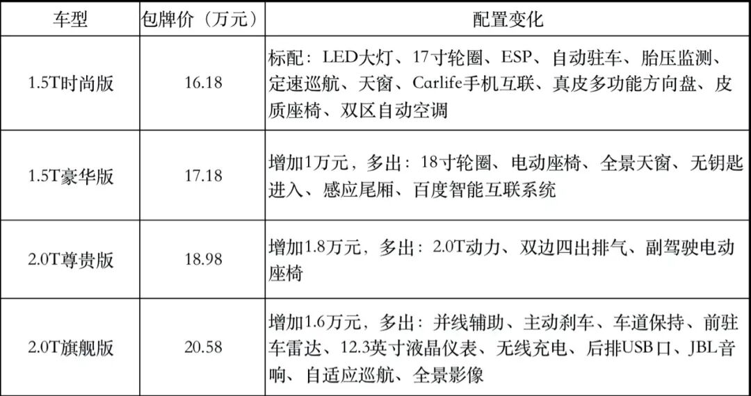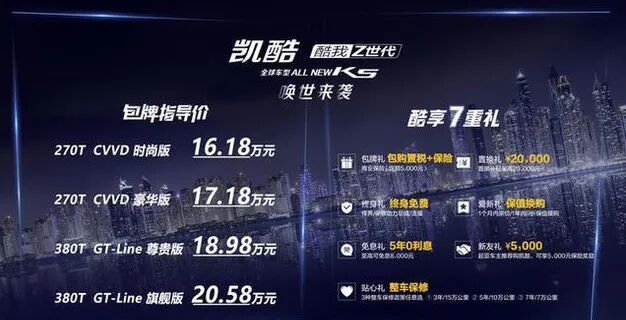 起亚新一代K5,即凯酷这款车,酝酿了相当长时间。亮相之后,久久不上市。大家也知道,近年韩系车面临一些困难,起亚无疑寄望靠凯酷这款车能重新打响品牌。由于凯酷被赋予了很多期望,上市策略等自然会经过深思熟虑,事实上凯酷这次确实没走寻常路。破天荒公布“包牌价”起亚凯酷这次真是想出奇制胜,打法方面完全不走寻常路。最初公布16.18-20.58万的售价,已经觉得有不错的性价比,这个售价比凯美瑞(参数|询价)、雅阁(参数|询价)等日系对手要便宜。买过车就知道,裸车价之后,还有一堆钱等着你付,例如购置税、保险费等。算下来,这里有2万多的成本了。某程度,可视作一上市就“优惠”2万多。当然啦,假如你在需要花钱拍牌的大城市。例如上海、深圳、广州,你就别指望轻则2万,重则10万的拍牌费用让起亚帮你付了……哪款配置值得买?起亚凯酷的配置构成很简单,1.5T和2.0T各两款车型。对于低入门价的车,我们会有个提防心,就是会不会配置斋到没人会买,仅仅是压低门槛,吸引你到店再说。实际来看,凯酷最入门的1.5T时尚版,舒适配置已经很齐全。尤其是看起来,已经没什么廉价感,座椅和方向盘已经是皮,而且大灯都是LED。往上每款车型的提升点,都相当明确。1.5T时尚版到豪华版,多1万,用来补齐原本不方便的东西,例如增加无钥匙进入、电动座椅等。再上去就是2.0T尊贵版,花1.8万主要为了更强的动力。最顶配的2.0T旗舰版,会有自动驾驶类的配置。凯酷在配置设计上,我觉得是有心思的。做到所谓的“循循善诱”,就是能不断制造动机,让你再往上选更高配置。买“包”,不再是女人的专利光看上面的配置分布,还无法给大家购买建议。因为起亚凯酷还有个很特别的打法,就是弄出各种不同的配置包。在选装包里,花几千元就能买到一堆配置,还是那句,又在哄你多花钱。需要留意的一点,就是最低配的1.5T时尚版,并没有资格买任何的包。从1.5T豪华版开始,才有开始有资格买选装包。另外,部分选装包是有叠加关系,智行包需要买了科技包之后,才能进行购买。还有2.0T顶配,其实不是真顶配,因为还有一个奢享包是2.0T顶配专属。好了,又回到灵魂拷问,凯酷配置如何选。如果预算有限,本来拿着高配A级车预算的朋友,可以考虑1.5T时尚版,没有选装包诱惑你,本身配置也不算差。1.5T豪华版会适合大部分人,斗胆估计这是日后走量的车型。这款车的配置选择权最多,如果你对自动驾驶有需求,可以选科技包+智行包。如果你对舒适豪华有追求,可以选舒适包。上述三个包全都要的话,相当于弄了一台真正的1.5T顶配出来,配置跟2.0T顶配相当,只不过你总共要多给1.5万。2.0T可建议就不多了,2.0T尊贵版只能选科技包,却不能再选智行包,你要获得L2自动驾驶能力,只能咬牙去买2.0T顶配了。没有两代同堂留意起亚的官网,已经看不到老的K5。以往韩系车很喜欢两代同堂,现在更大的任务在于重塑品牌,所以直接把老K5砍掉。当然啦,新能源车型除外,插混车型依旧是基于老的K5。不仅是停掉老款车型,起亚近期还称,将不再推出10万以下的车型,足见起亚要复兴的决心。