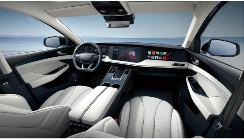智能科技化是天际ME7内饰设计的主题。ME7配备了5个屏幕,其中三块从中控台左侧一直贯穿至最右,另外两块布置在了前排座椅后方供后排乘客体验。