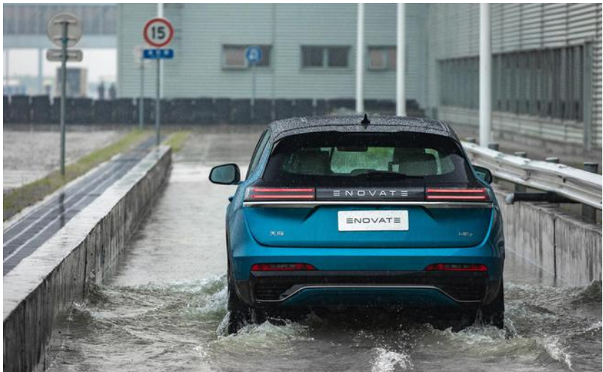 天际ME7的车尾部分设计更为立体,贯穿式的后尾灯占比很大,ENOVATE字母隐藏于贯穿的后尾灯内部,拥有不错的质感。