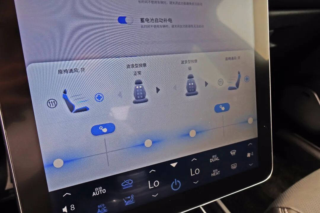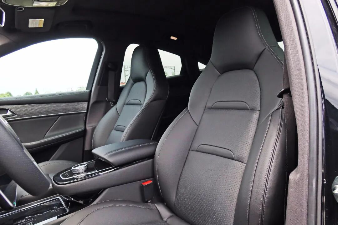 一体式电动真皮座椅采用了性能车上惯用的设计,它并非只是样子货,其实际表现柔软舒适,且侧翼支撑很好。主副驾驶带有记忆功能的12向电动调节真皮座椅还兼具了通风按摩并有多档位可调,这在同级车型中绝无仅有。前排头枕的角度设计到位,对驾乘者的头部有很好的承托性。