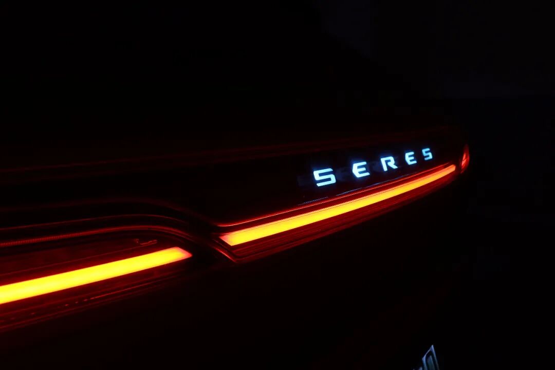 贯穿式LED尾灯设计相当吸睛,转向灯也采用了时下流行的“流水式”,灯腔内部结构更是花了不少心思,中央悬浮的SERES字样在夜晚点亮后甚是璀璨,进一步强化了品牌元素。有趣的是,赛力斯SF5将后备箱开关集成在了后雨刷上,保证了设计的完整度,在美观性和易用程度上均达到了高性能。