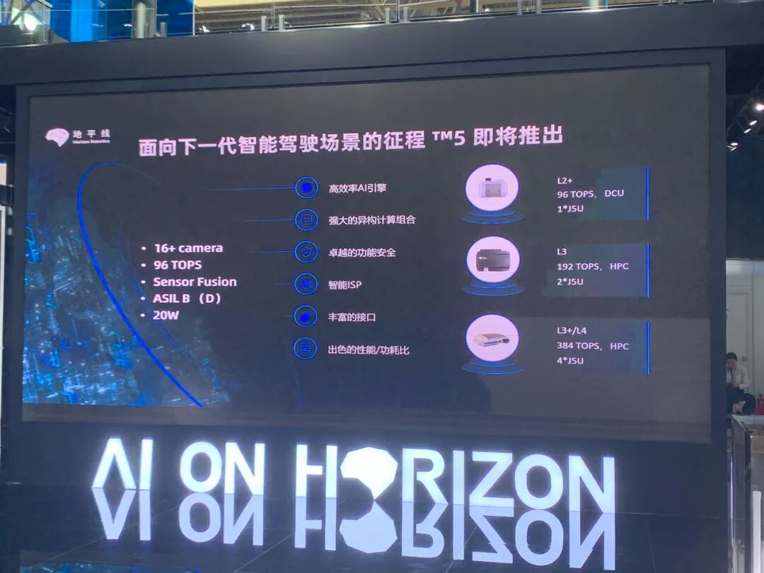 在这次发布会上,地平线还预告了即将在 2021 年发布的征程 5 芯片。征程 5 有征程 5 和征程 5P 两个版本,前者算力 96 Tops,功耗 20 W,后者算力 128 Tops,功耗 35 W,两颗芯片都支持接入 16 路以上的视频信号。