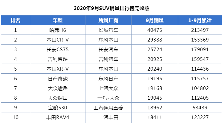 在SUV领域,虽然不完全是自主品牌的天下,但自主品牌占据着较大优势。比如哈弗H6(参数|询价),常年来,月月都是销量冠军,刚过去的9月也不例外。还有长安CS75(参数|询价)、吉利博越(参数|询价)等优秀的自主品牌SUV车型,均在SUV销量榜单前列。
