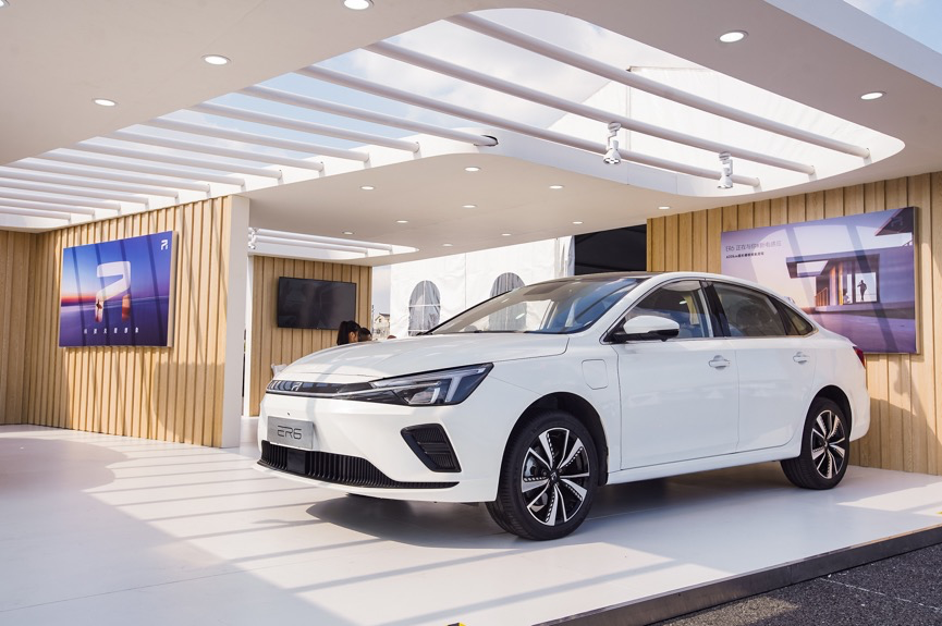 目前这款车上市三个版本,价位是16.28万—20.08万区间,有银叶金、珠光白、驭光银和宙光黑四种颜色可以选择,主打的颜色是驭光银,竞品车型是几何A(参数|询价)、Aion S(参数|询价)这类车型。简单的看一下外观。一般车型会把进气系统放在车头上半部分,有些纯电动车会在车头做一个纯封闭的处理,那么我们这款ER6有点意思,车头上半部分做了一个封闭处理,把参数化主动进气系统放到了车头底部,并且做了一个直瀑式的造型设计。车尾做了一个小小的小鸭尾,最明显的还是车尾底部的贯穿式的饰条,跟车头贯穿式的镀铬饰条做了一个前后呼应。轮毂的造型很漂亮,采用了米其林的轮胎,轮胎规格是215/50 R17。整个内饰风格搭配采用了白色和蓝色的混搭,内饰材料选择也特别用心,特别是官方名称为豚跃蓝珠光皮料的蓝色饰板,在任何角度下都泛着微微的珠光色,摸起来的手感也特别舒服。中间这块14.3英寸的2.5D曲面大屏让我想到了特斯拉,功能也很强大,可以控制天幕遮阳帘、空调吹风调节、四个车窗和门的控制等等。跟特斯拉不同的是,在ER6身上,还保留了一些实体按键。随着科技的进步,很多车企追求简单化,减少实体按键的使用,但是我个人的开车习惯还是喜欢实体按键,毕竟在开车的时候通过屏幕的层级搜索找功能也不是特别方便。作为一辆纯电动车,ER6把电池安装在了底盘下面,所以座椅姿态相对比较高。特别是对于后排乘客而言,我163cm的身高,坐在后排头顶空间比较局促。厂家可能也意识到了这个问题,所以车顶采用了180度全景天窗的设计,以此来增加后排的通透性和开扬感。设计理念很好,对于一些浪漫主义的消费者来说是个看星星的好时机。作为一辆纯电动车,我先交代一下各方面的数据,首先ER6全系工信部纯电动续航里程都是620公里。这个数据在20万价位的纯电动车市场中算是最优秀的了。除此之外,官方公布的一个快充功能,充电15分钟,行驶200公里。之前借的一辆Aion LX(参数|询价)是充电15分钟,行驶60公里。这么一对比,ER6的表现真心不错。ER6所搭载的电动机最大功率135kW,峰值扭矩280N·m,官方0-100km/h加速仅8.3秒,在实际测试中,ER6实现的0-100km/h加速只需要7.9秒,完美挤进八秒大关。本次试驾活动仅仅体验了场地试驾,包括绕桩,0-60公里/小时加速体验等,没能感受到ER6的公路表现,着实有点可惜。作为一台顶配20万元即可拿下的纯电家轿,ER6确实有一些亮点,比如620公里的超长续航、15分钟充电200公里的超快充电速度,加之充满科技感的外形和考究的内饰,这些在同价位产品中还是很有竞争力的。那么,对于这款R汽车出品的首款纯电家轿,你有什么看法?欢迎在评论区告诉我们吧。