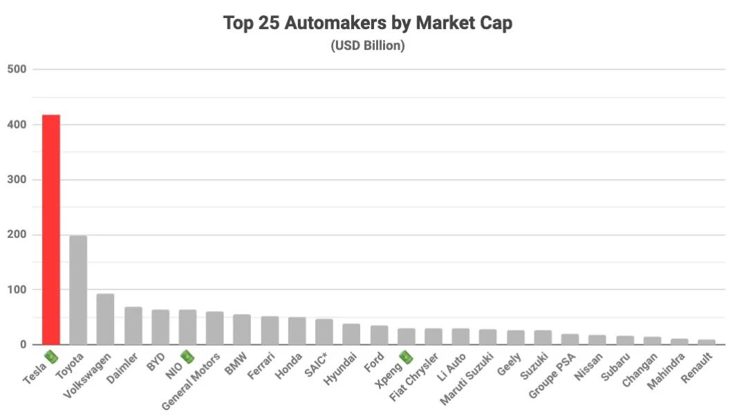 蔚来汽车当前市值634.6亿美元,为全球电动汽车公司第二名。第一名是特斯拉,市值高达4186亿美元,约为蔚来汽车市值的6.6倍。