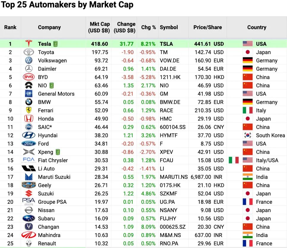 据最新市值榜单,蔚来汽车目前位列全球汽车公司市值榜第6名,距离第5名比亚迪仅差7.3亿美元。蔚来汽车成为中国汽车第一股,就在旦夕之间了。