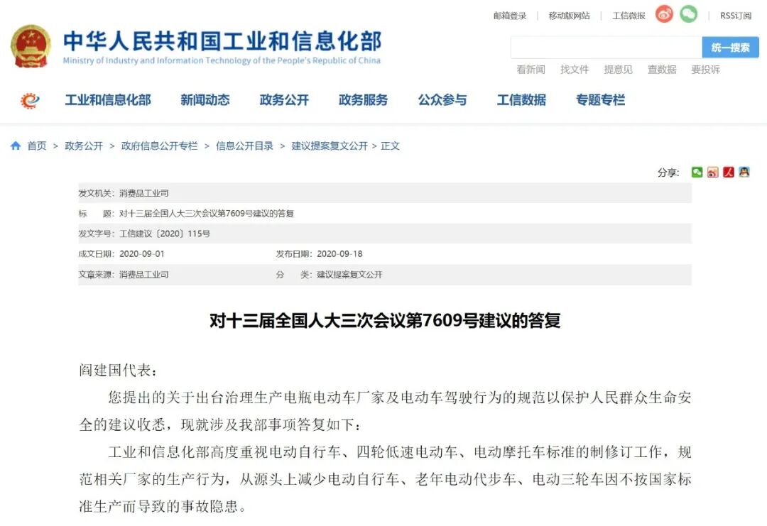据《答复》表示,下一步,工信部将会同有关部门继续扎实推进低速电动车治理工作,加快低速电动车标准制定,进一步健全低速电动车生产、销售、税费、保险和使用管理、售后服务等环节具体管理措施,完善低速电动车管理体系。