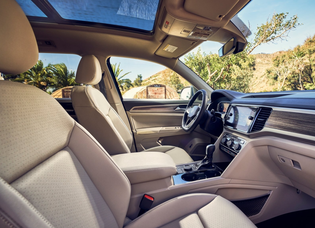 经过更新的2021大众Atlas,是采用大众汽车屡获殊荣的模块化横向矩阵(MQB)架构设计的,比大众汽车产品组合中的其他任何车型都要大。尽管其总体高度与2020年Atlas相同,但经过重新设计的前后保险杠,刷新后的Atlas比以前长了2.4英寸。入门级装饰的顶棚导轨为标准黑色,SEL和SEL Premium型号为银色。SE w / Technology型号以及SEL和SEL Premium型号的标准配置都有一个大的全景天窗,带有两部分式玻璃开启系统和电动遮阳帘。Atlas的室内设计是经典的大众汽车清洁型和实用型,并带有高级感。驾驶员控制装置的位置旨在实现最佳的人体工程学和可用性,以驾驶员为中心的显示屏增加了方向盘后部的参与度。座椅位置,换档杆高度以及踏板之间的间距均旨在最大程度地提高驾驶员的舒适度。