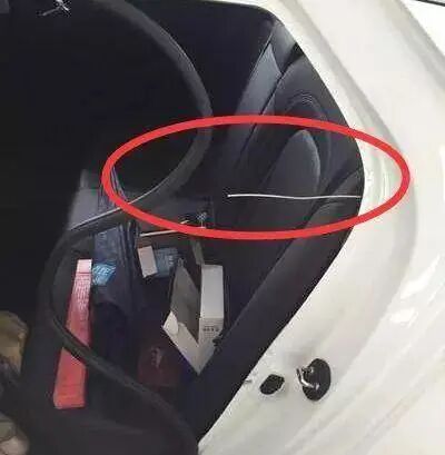 首先就是我们找到右边车门玻璃底下的一块横向橡胶,把它拿起来,然后找铁丝勾起里面一个拉杆,然后直接一提,车门就打开了!
