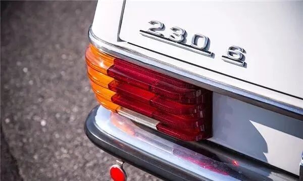 W114的尾灯短小到有些可爱,位于上方的230尾标,代表的是其配置的2.3升自然吸气发动机,230后面的6,代表的是发动机的6个缸数。