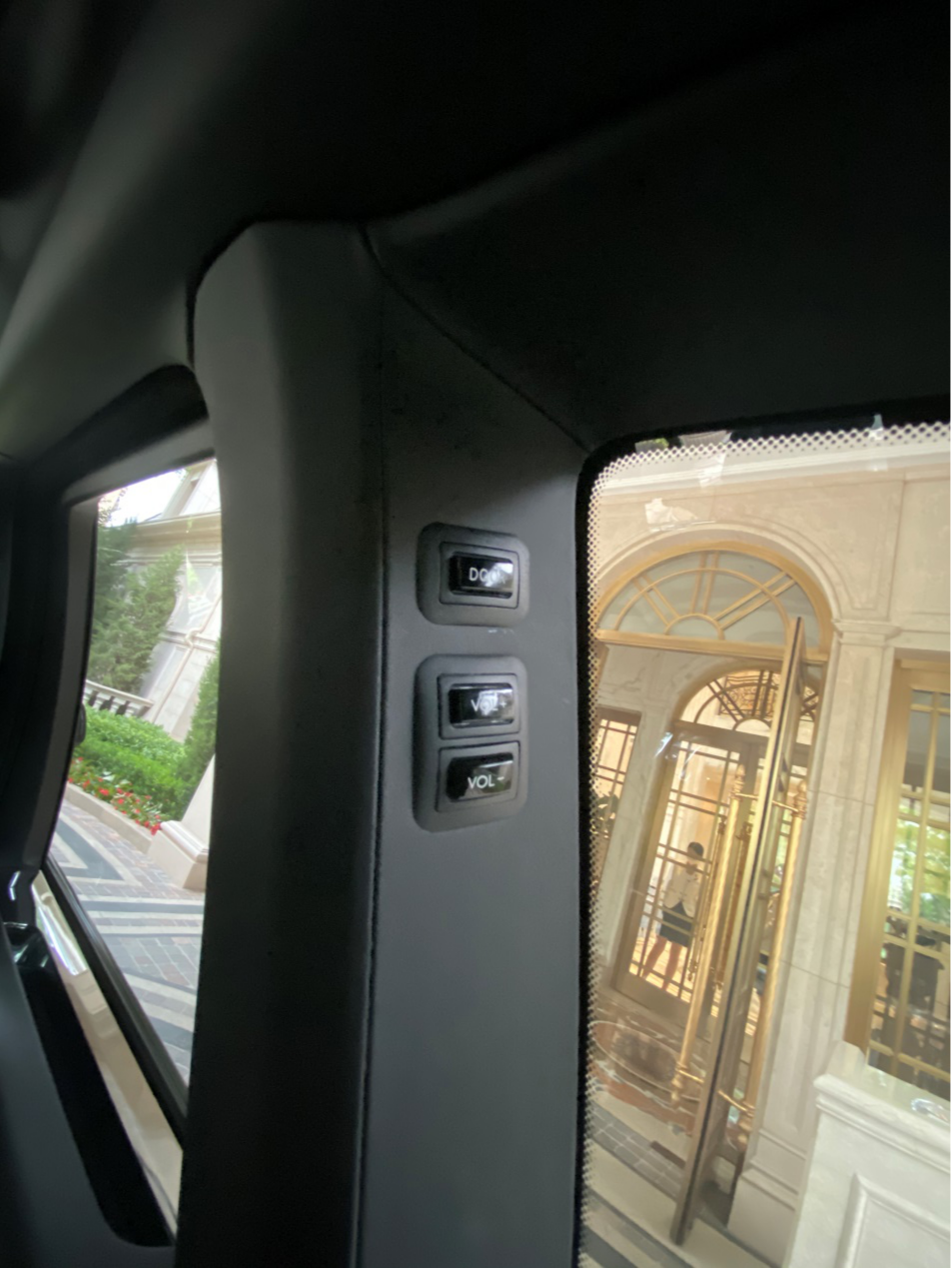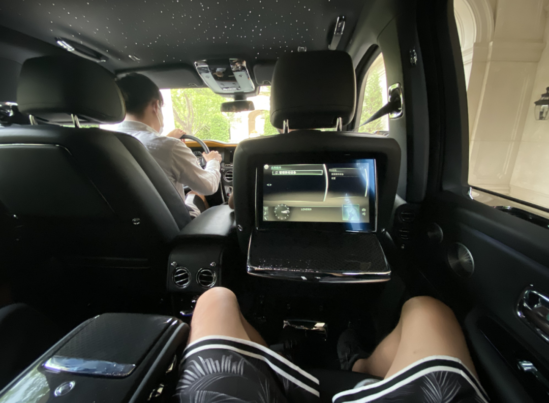 还是看看车合适,这体验劳斯莱斯嘛,还要先体验后排的。而且上车后一定不能用自己的手关门,否则这种环境下会显得自己没有做过劳斯一样。关门按钮的位置在车门后面的C柱位置,那里有三个按钮,只需按住最上面那个车门就自己关了。
