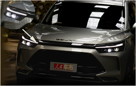 头灯设计相比车头整体来说造型略显朴素,不过很好的与车头融合在一起,内部均采用LED光源且全系标配LED灯光总成,头灯虽然整体造型略显普通,不过内部的LED灯带与LED光柱看起来饱满犀利,特别是点亮后的效果更加出色。