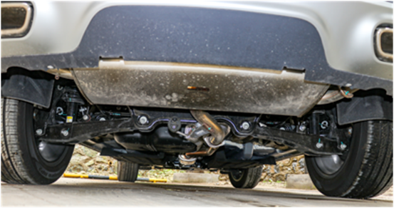 底盘方面,避震器的设定虽然比较硬,但是这种硬更多体现在了通过一些沟坎时对冲击的化解不足,真正的极限支撑还有所欠缺,好在是路面上的一些常见冲击都能化解一部分,加上避震器回弹速率较高,所以不会让车内乘员感觉通过冲击时会有底盘松散或者大幅度的横向跳跃。